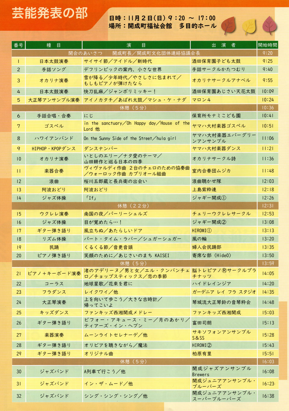 出 演 開成ジュニアアンサンブル Blue Birds & Super Blue Birds
